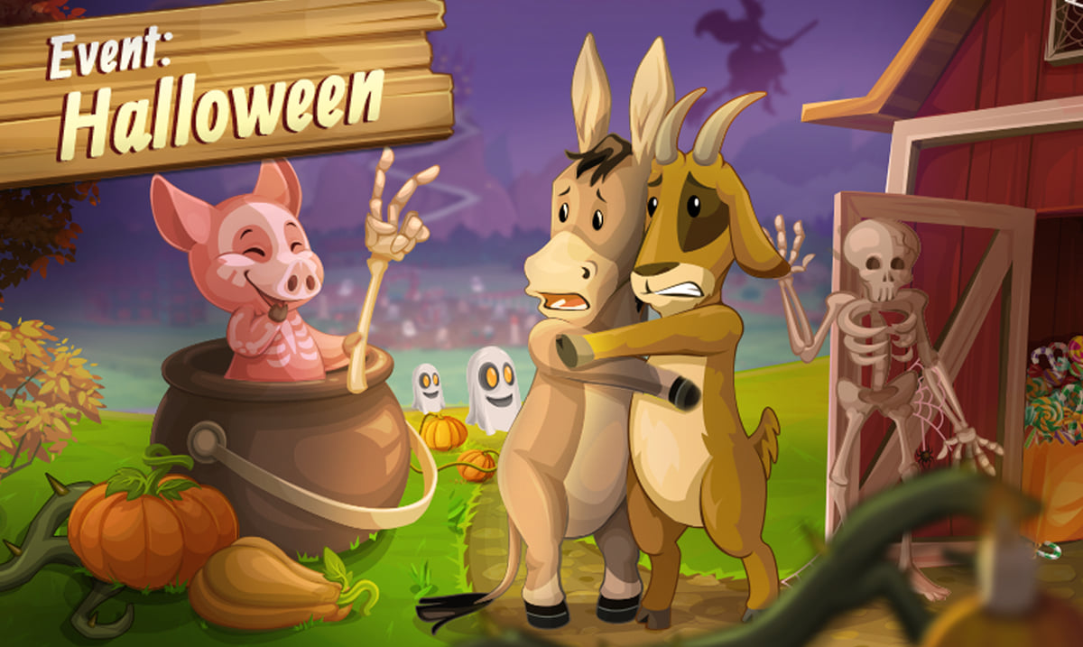 For this event, a crop will be introduced: the pumpkin. Pumpkins can be planted on your fields. You can use it in two different ways: either use it to create yummy seasonal dishes in your Fish restaurant or use it to produce a special Halloween feed in the mill. Your chickens, cows and pigs are already looking forward to this seasonal feed.